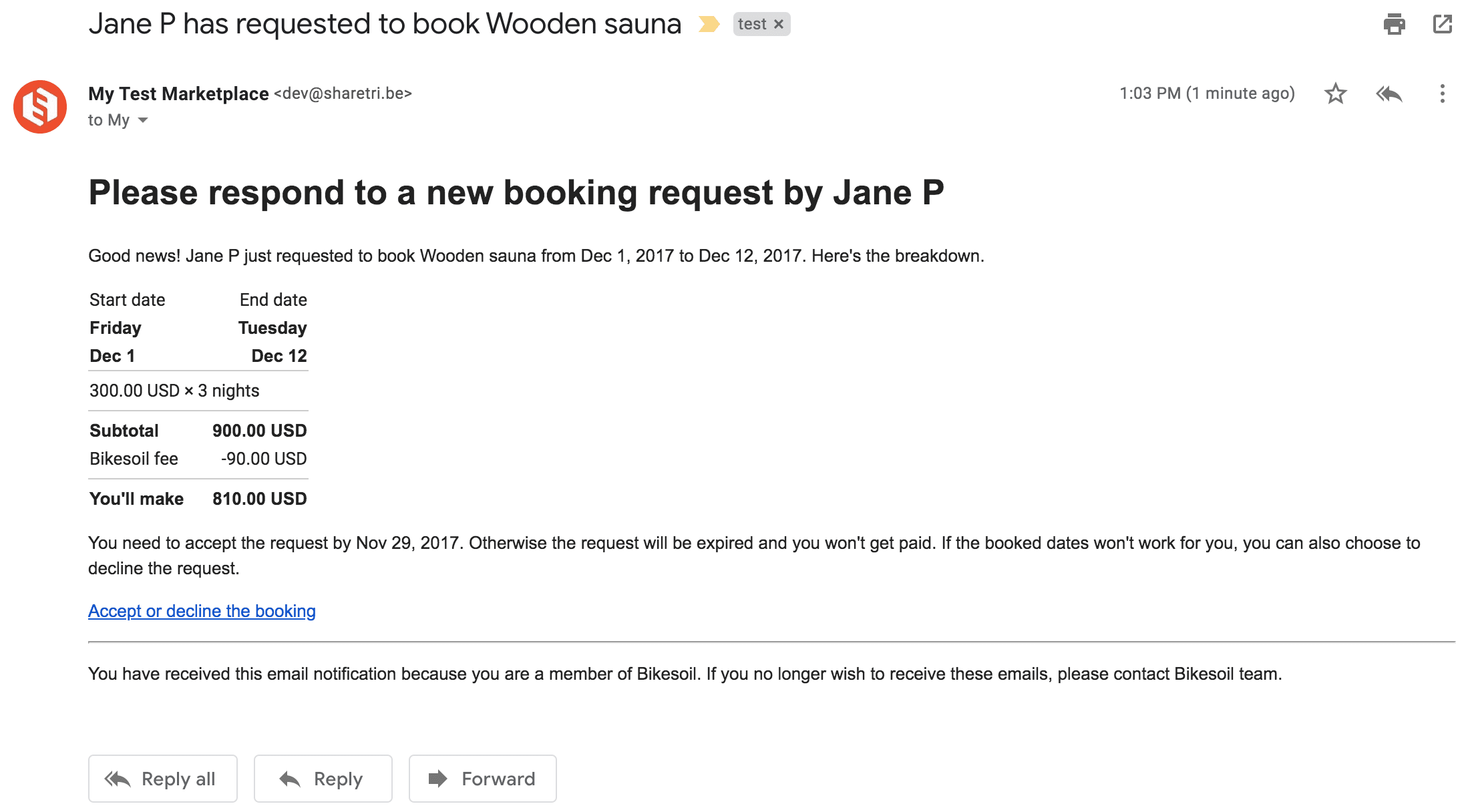 You have received this email notification because you are a member of {{marketplace.name}}.